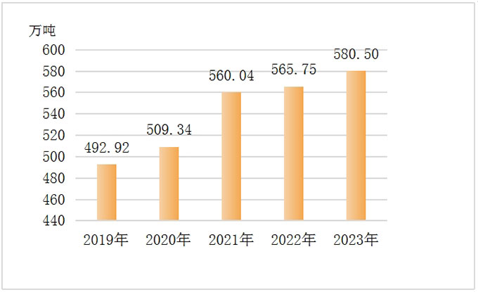 图2 2019-2023年白城市粮食产量