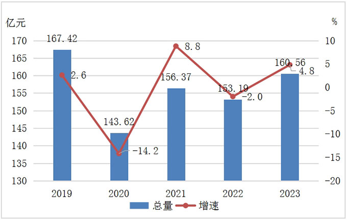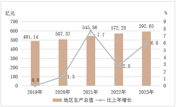图1 2019-2023年白城市地区生产总值及其增长速度