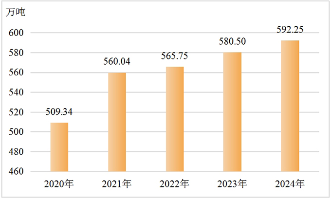 2020-2024年白城市粮食产量