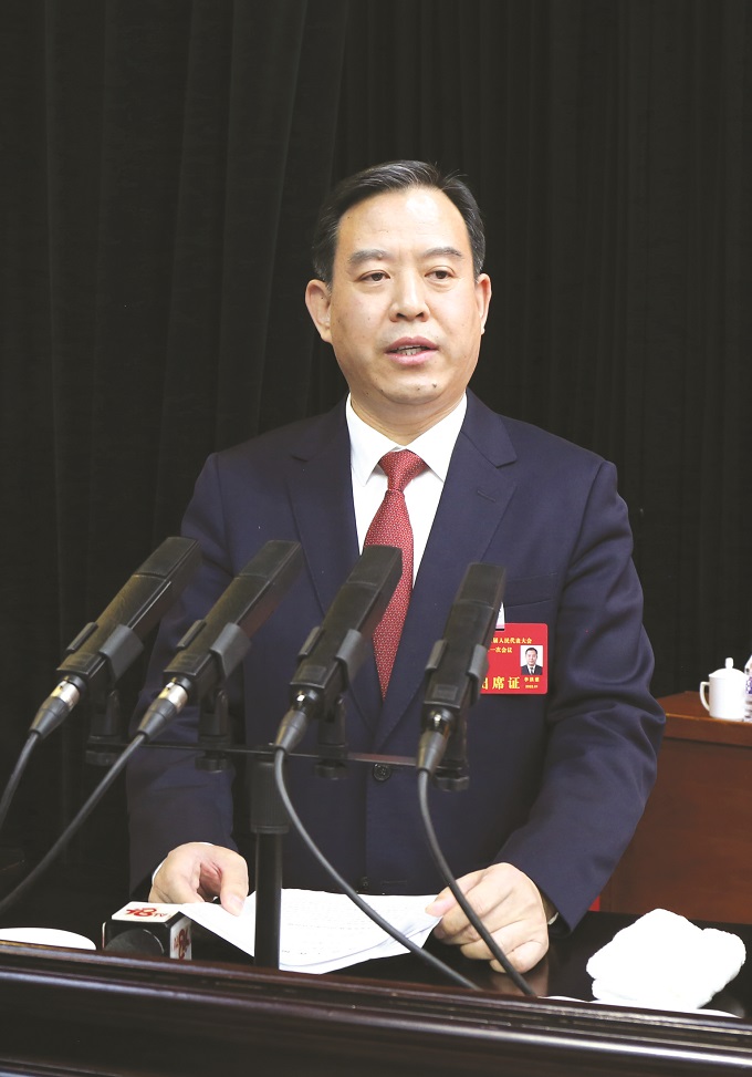 李洪慈作政府工作报告。